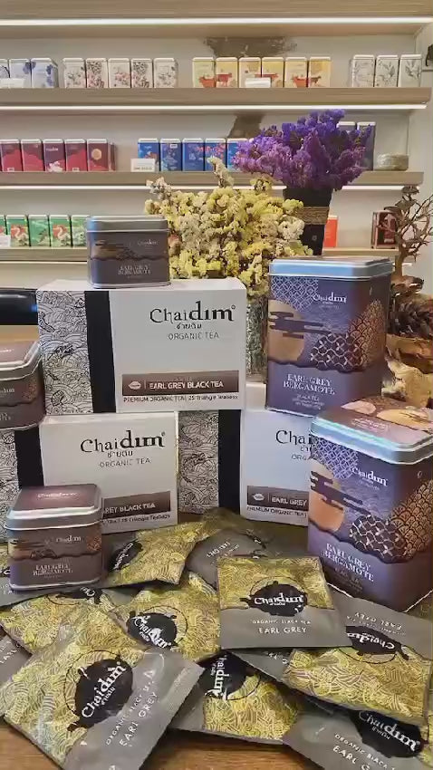 ชาดำเอิร์ลเกรย์ Chaidim ได้ค้นพบการผสมผสานอย่างลงตัว โดยชาดำออร์แกนิกจากไร่ชาทางตอนเหนือของไทยและกลิ่นเบอร์กามอตแบบตะวันตก ทำให้ได้รสชาติเข้มข้นจากชาดำแบบดั้งเดิมและกลิ่นซิตรัสหอมสดชื่น เป็นเครื่องดื่มชาที่มีคาเฟอีน ช่วยให้รู้สึกกระปรี้กะเปร่า ให้คุณได้ทำงาน และใช้เวลาของวันได้อย่างมีประสิทธิภาพ